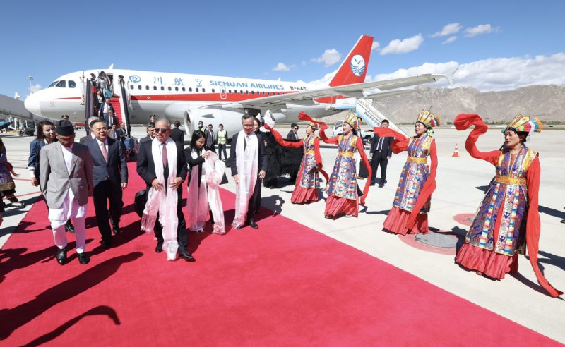 सिछ्वान एअरलाइन्स मार्फत स्थानीय समय अनुसार करिब १२ बजे प्रधानमन्त्री प्रचण्ड चीनको स्वशासित क्षेत्र तिब्बतको ल्याहासास्थित गोंगार विमानस्थलमा अवतरण गरेका हुन् । । गोंगार विमानस्थलमा प्रधानमन्त्री प्रचण्डलाई सांस्कृतिक झाँकी सहित भव्य स्वागत गरिएको छ ।