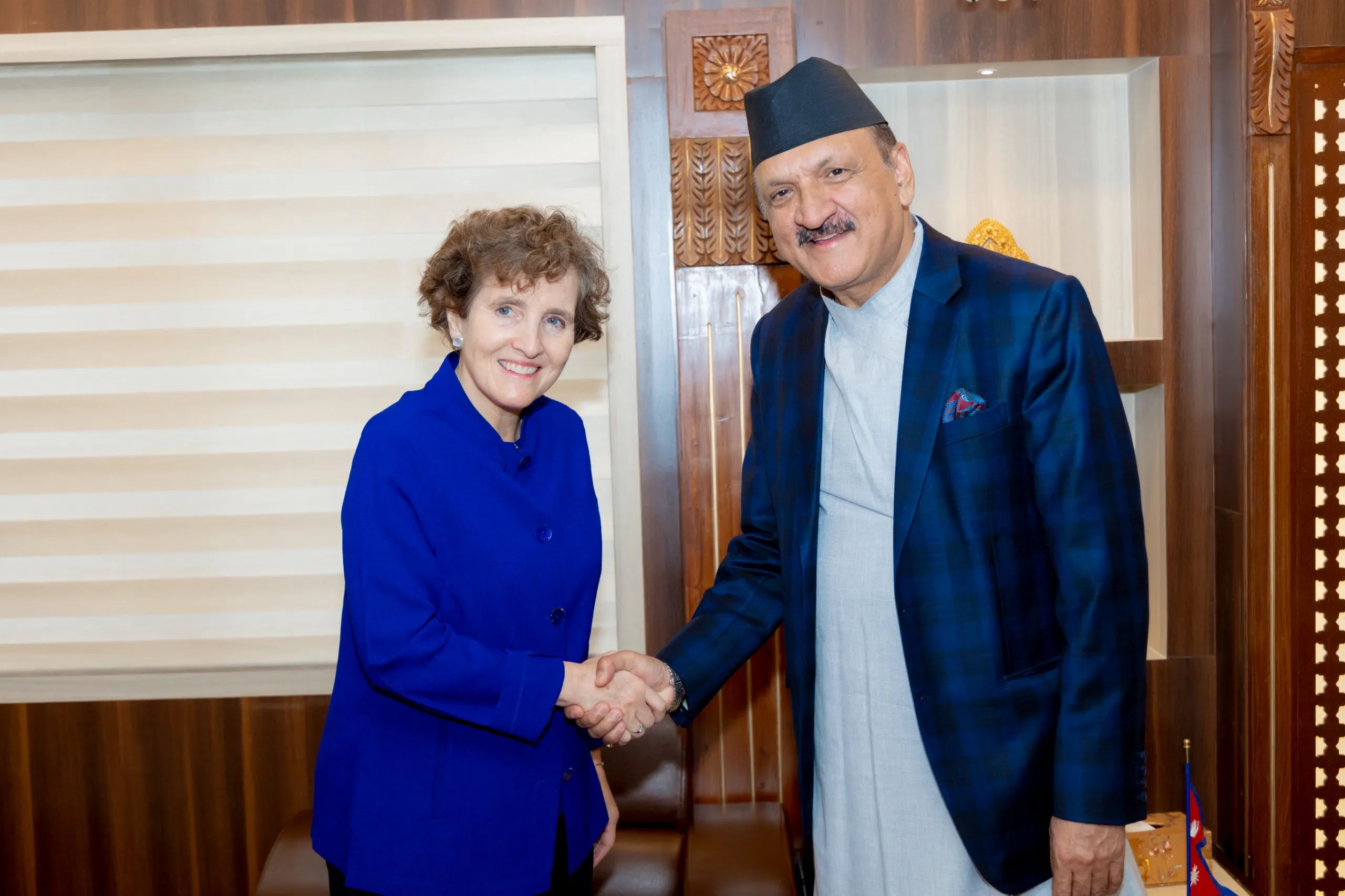 एमसीसीका सिइओ एलिस अलब्राइट र अर्थमन्त्री डा। महतबिच शिष्टाचार भेट