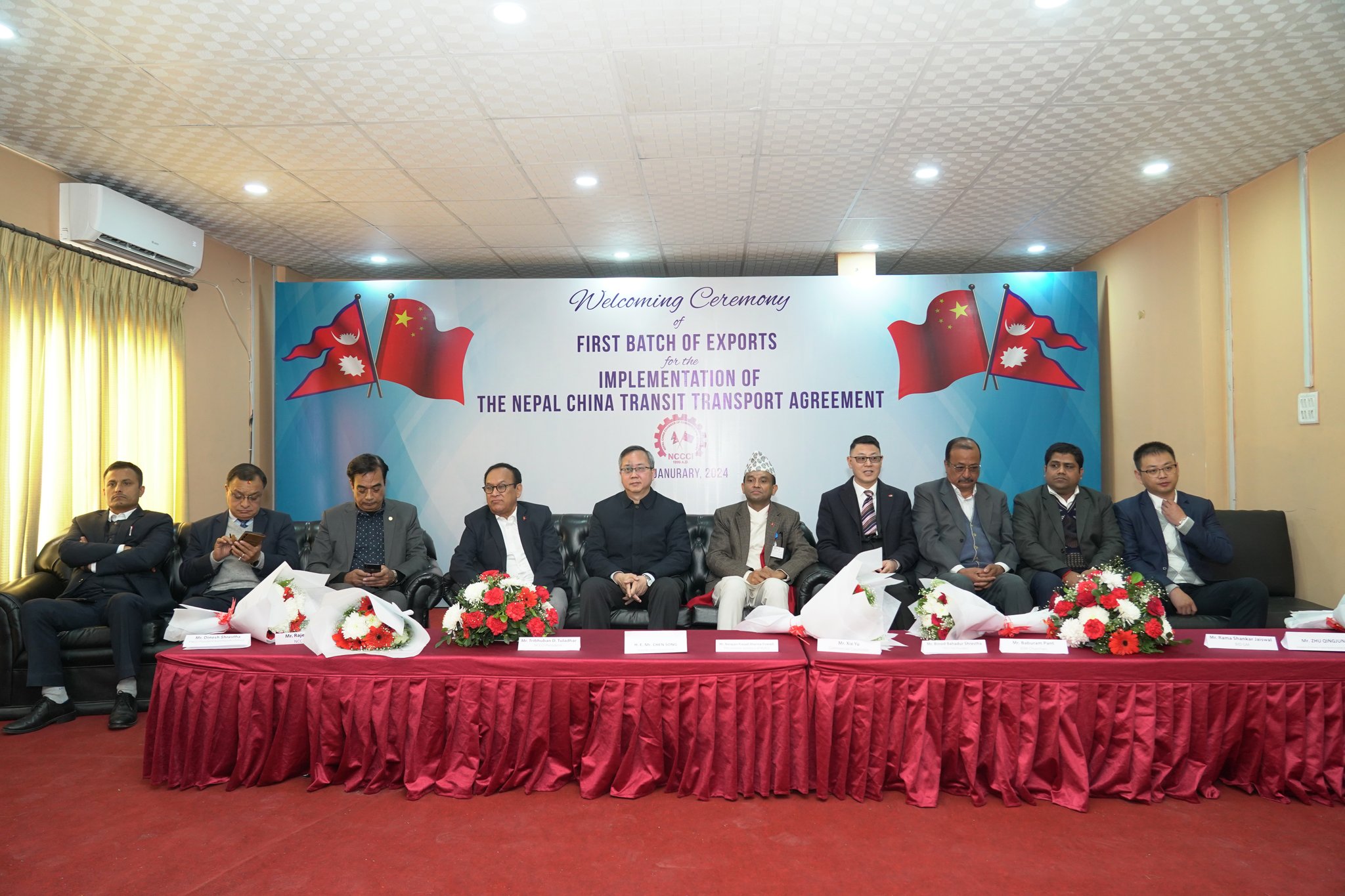 निर्यात शुभारम्भ कार्यक्रममा बोल्दै नेपालका लागि चिनियाँ राजदुत चेन सोङले चीन सरकारसँग भएको पारवहन सम्झौता कार्यान्वयनसँगै तेस्रो मुलुकसँगको व्यापारको बाटो खुला भएको बताए।