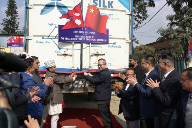 काठमाडौँ। नेपाल–चीन पारवाहन सम्झौता ८ वर्षपछि कार्यान्वयमा आएको छ। बिहीवार काठमाडौंमा एक कार्यक्रमका बीच नेपाल चीन पारवहन यातायात सम्झौता कार्यान्वयनको पहिलो निर्यातको शुभारम्भ भएको हो।