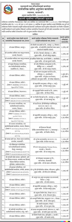 मन्त्रिपरिषद् कार्यालय अन्तर्गतको सार्वजनिक खरिद अनुगमन कार्यालयले कार्यसम्पादन राम्रो नभएका २२ निर्माण व्यवसायीहरुलाई ३ देखि १ वर्ष अवधिका लागि कालोसूचीमा राखेको हो ।