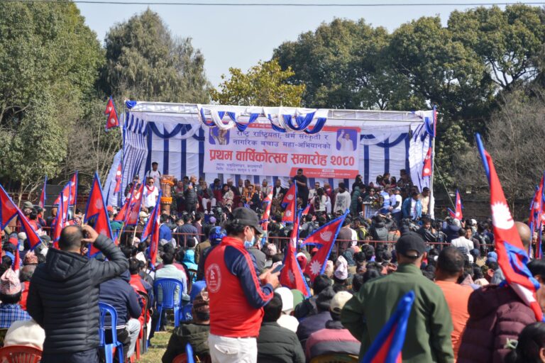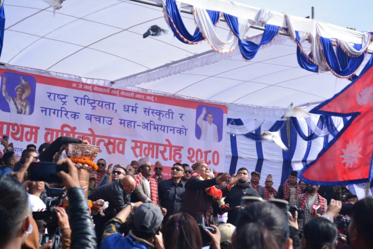 काठमाडाैँ । व्यवसायी दुर्गा प्रसाईं नेतृत्वको नागरिक बचाउ अभियानले प्रथम वार्षिकोत्सव आज काठमाडौँमा विशेष कार्यक्रम साथ सम्पन्र भएको छ ।
