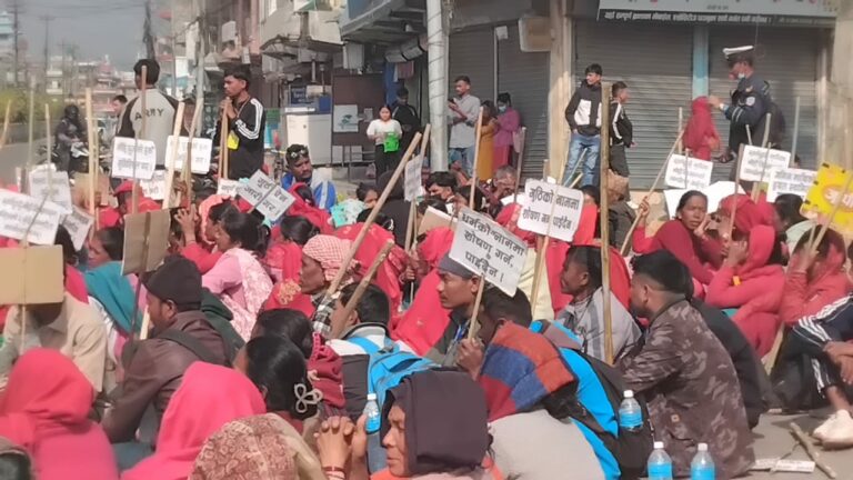 हातमा लाठी बोकेर सडकमा निस्किए स्वर्गद्वारी गुठीका मोही किसान