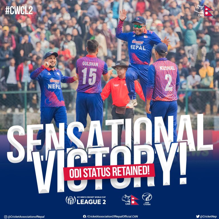 नेपालले एक दिवसीय मान्यता जोगायाे,यूएई १७७ रनले पराजित