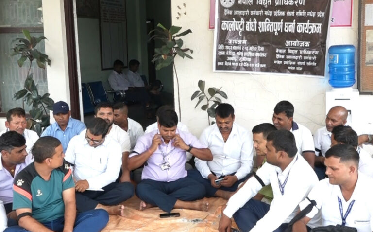 जनकपुरस्थित विद्युत प्राधिकरणको कार्यालयमा दैनिक ज्यालादारी कर्मचारीहरूको धर्ना