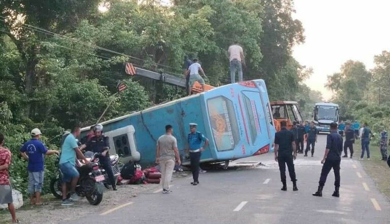 काठमाडौँबाट दाङ आउँदै गरेको बस कपिलवस्तुमा दुर्घटना हुँदा २६ जना घाइते