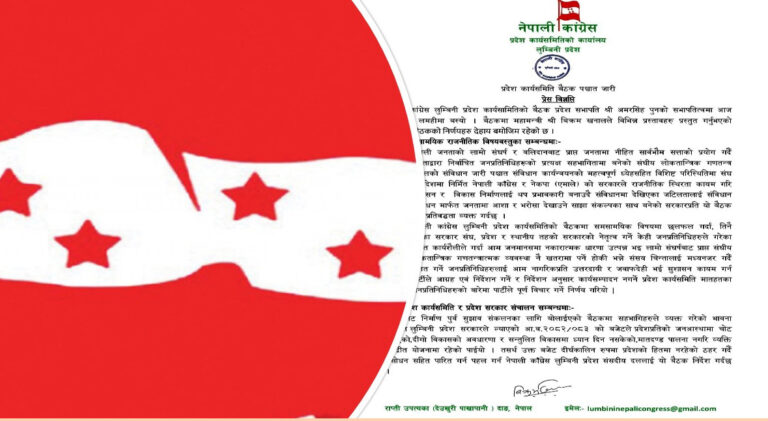 लुम्बिनीमा बजेटप्रति असहमति : बजेट पुनरावलाेकनका लागि कांग्रेसले दियाे संसदीय दललाई निर्देशन