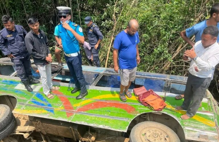 तुलसीपुरकाे बखरियामा बस दुर्घटना : दुई जनाकाे मृत्यु, ३५ जना घाइते