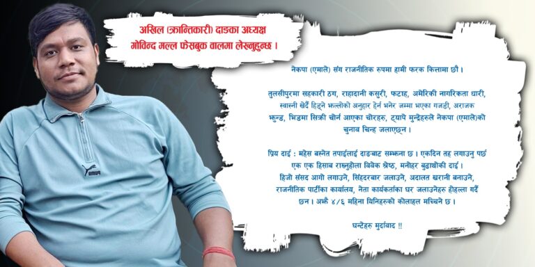 महेश बस्नेतलाई सम्बाेधन गर्दै अखिल क्रान्तिकारी अध्यक्षले लेखे आक्रोशपूर्ण स्टाटस