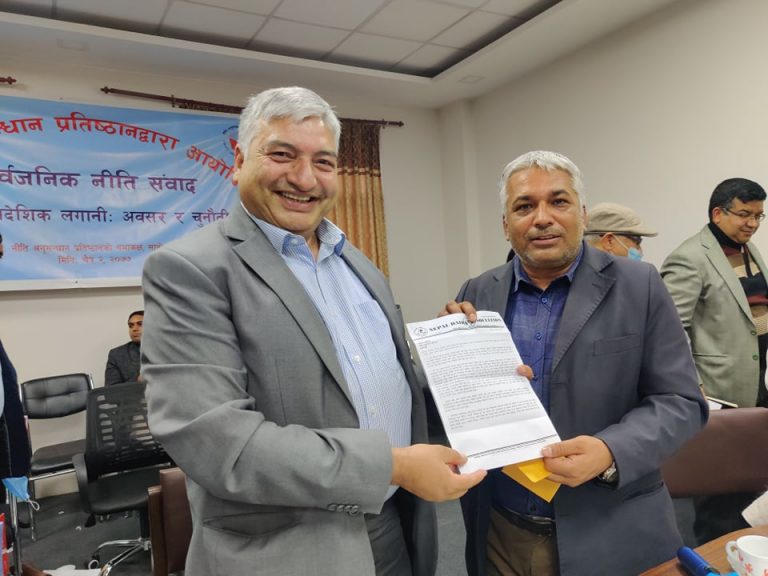 कृषि क्षेत्रमा बैदेशिक लगानीको विरोधमा ३७ वटा संघसंगठनद्वारा नीति अनुसन्धान प्रतिष्ठानलाई ज्ञापनपत्र