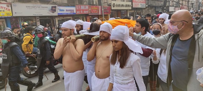 महिला हत्या, हिंसाको विरुद्धमा ‘शव’ बोकेर प्रर्दशनमा उत्रिए अभियन्ता (फोटो फिचर)