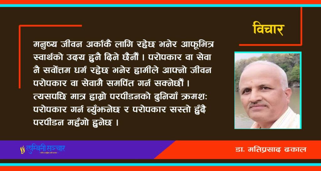 स्वार्थले प्रश्रय पाउँदै गएको परोपकार