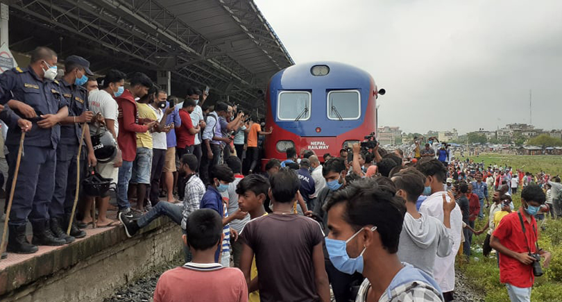 अन्ततः जनकपुर आइपुग्यो रेल, बिहानैदेखि रेलको प्रतिक्षामा बसेका स्थानीय उत्साहित