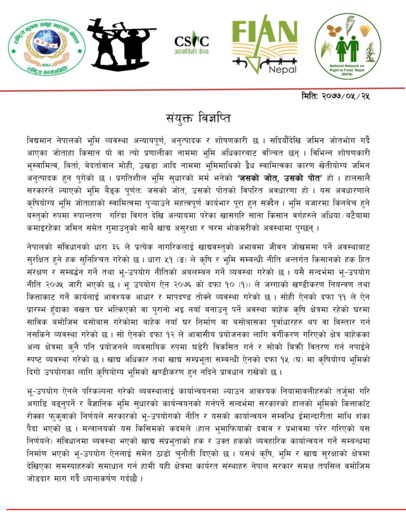भूमिको कित्ताकाट फुकुवा गर्ने सरकारको निर्णय फिर्ता लिन विभिन्न पाँच संस्थाको माग