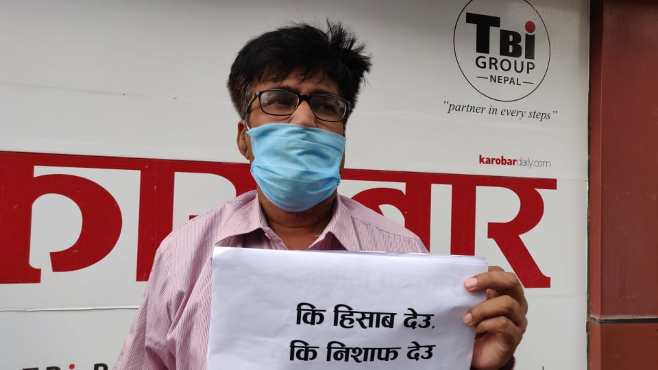 कारोबार दैनिकमा पत्रकारको धर्ना : कि हिसाब देउ कि निशाफ देउ !