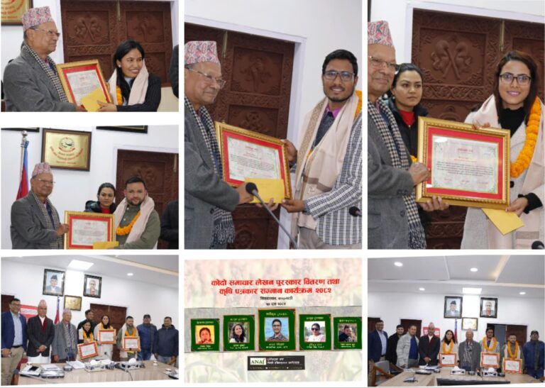 कोदोजन्य बाली प्रवर्धनमा कलम चलाउने पाँच कृषि पत्रकार सम्मानित