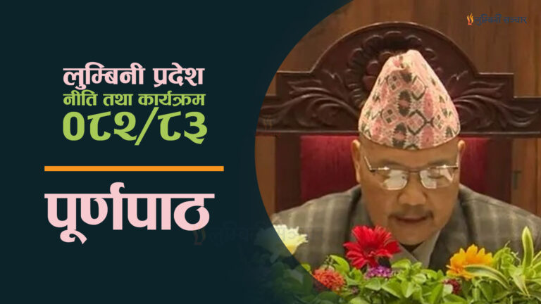 लुम्बिनीको २०८२/८३ नीति तथा कार्यक्रम : कृषि, पर्यटन, पूर्वाधार र वित्तीय अनुशासनलाई प्राथमिकतामा (पूर्णपाठ)