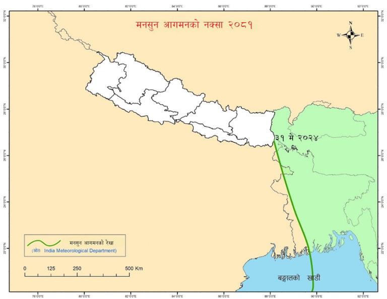 सिक्किम हुँदै अगाडि बढ्दै मनसुन, जुन १३ मा पूर्वी नेपाल प्रवेश गर्ने