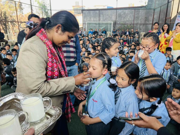 नेपाल डेरी एसोसिएसनद्धारा प्रोलिफिक स्कुलका पाँच सय विद्यार्थीलाई दुधपान