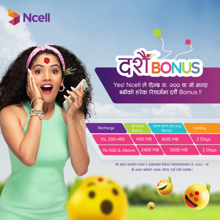 एनसेलको दशैं अफर, रिचार्जमा ८ जीबीदेखि अलटाइम डेटासम्म