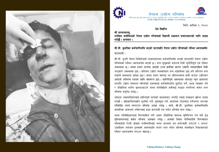 सीजी ब्रुअरीको घटनाप्रति सीएनआईको बिरोध, वार्तामार्फत् समस्या समाधान गर्न आव्हान