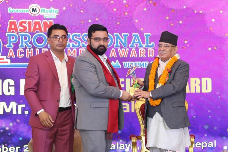 धितोपत्र ब्रोकर एशोशिएशनका अध्यक्ष ढकाल एसियन प्रोफेसनल योङ ईन्टरप्रेनियर्स अवार्डबाट सम्मानित