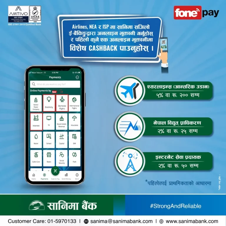 सानिमा बैंकको मोबाइल बैंकिङ्गमा क्यासब्याक योजना