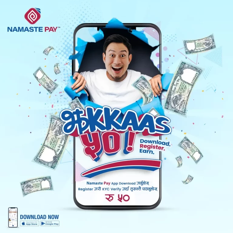 नमस्ते पे एप डाउनलोड गरि केवाइसी दर्ता गर्ने नयाँ प्रयोगकर्ताहरूलाई ५० रूपैयाँ