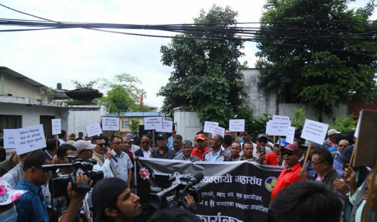 सार्वजनिक खरिद अनुगमन कार्यालयमा निर्माण व्यवसायीको धर्ना