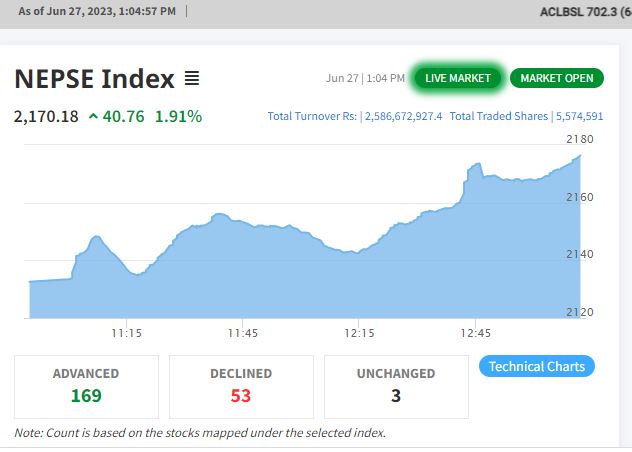 नेप्से ११ अंकले बढ्दा कारोबार रकम ५ अर्ब माथि