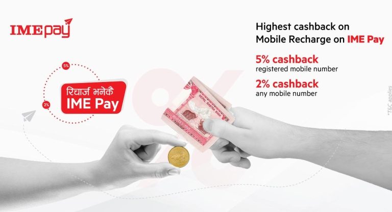 आइएमई पे मोबाइल टप अपमा पाँच प्रतिशत क्यासब्याकको निरन्तरता