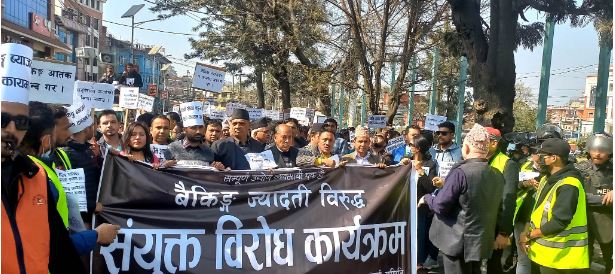 बैंक तथा वित्तीय संस्थाहरूले लगाएको चर्को व्याजदरविरुद्ध व्यवसायीहरुको प्रदर्शन