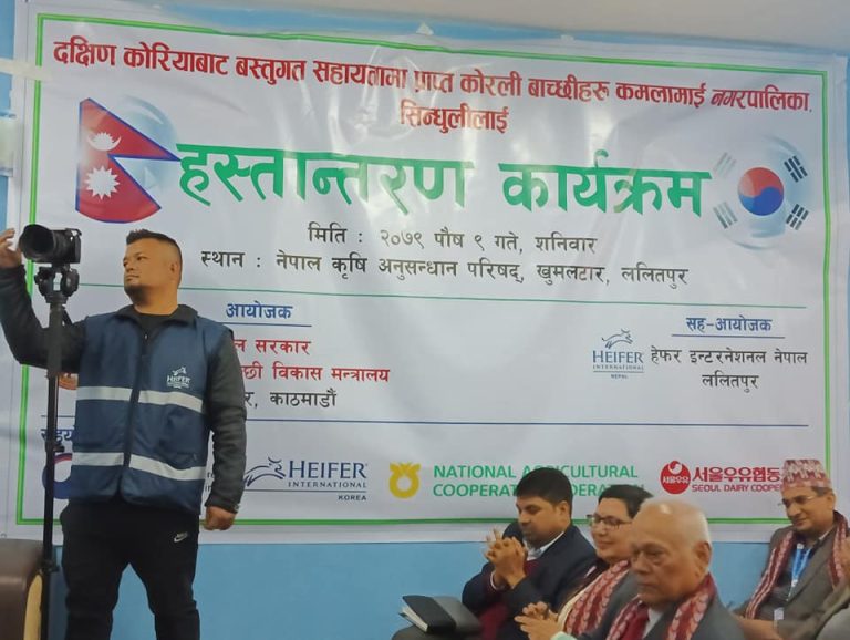 कमलामाई नगरपालिकालाई हस्तान्तरण गरियो कोरियाबाट ल्याइएका होल्स्टेन बाच्छी