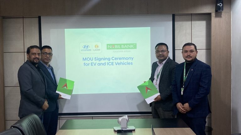 नबिल बैंक र लक्ष्मी इन्टरकन्टिनेन्टलबिच इभी खरिदमा कर्जा सुविधा सम्बन्धी सम्झौता