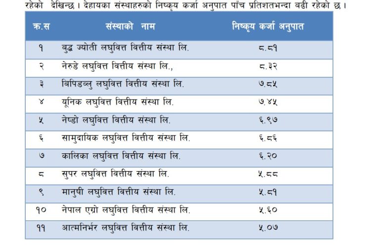 ११ लघुवित्तको निष्कृय कर्जा अनुपात पाँच प्रतिशतभन्दा बढी
