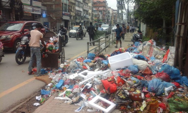 पुतलीसडकको पैदलमार्गमा थुपारियो फोहर