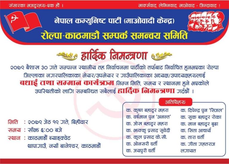 माओवादी केन्द्रबाट रोल्पामा निर्वाचित स्थानीयदेखि संघीय जनप्रतिनिधि काठमाडौंमा भेला हुँदै