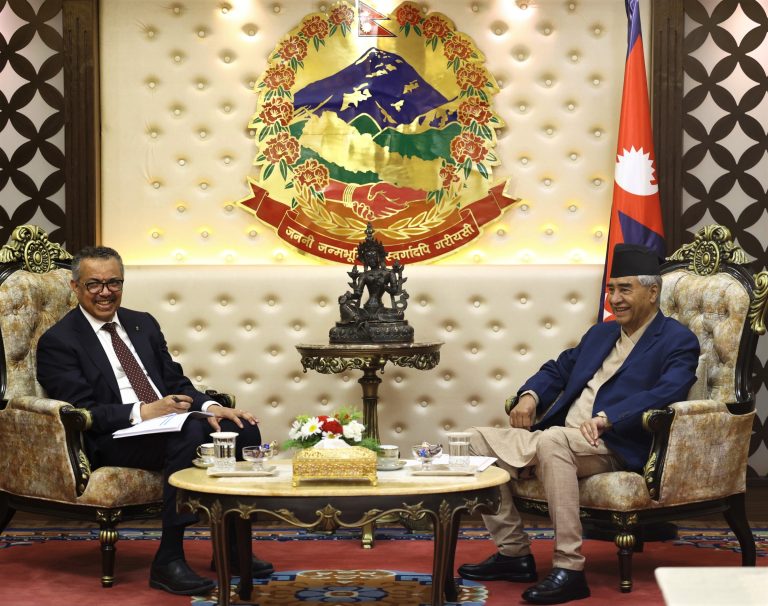 प्रधानमन्त्री देउवा र डब्लुएचओका महानिर्देशक टेड्रोसबीच शिष्टाचार भेट
