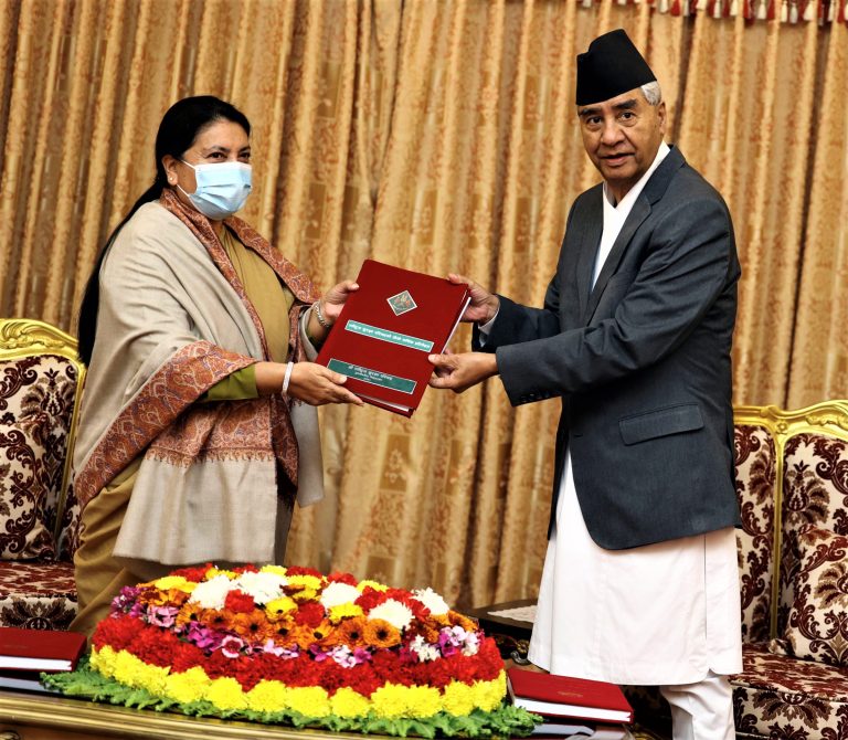 राष्ट्रपतिसमक्ष प्रधानमन्त्री देउवाले पेश गरे वार्षिक प्रतिवेदन
