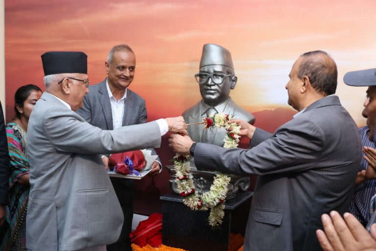 प्रधानमन्त्रीद्वारा जननेता भण्डारीकाे प्रतिमा अनावरण