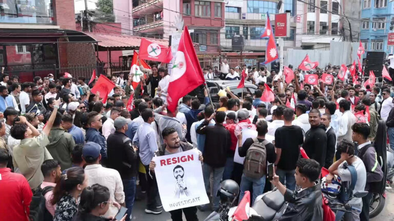 उपप्रधानमन्त्री लामिछानेको राजीनामा माग गर्दै नेबिसंघको प्रदर्शन