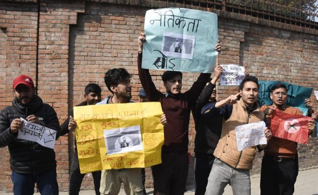 सिंहदरवार अगाडी गृहमन्त्री लामिछानेविरुद्ध नेविसंघको प्रर्दशन