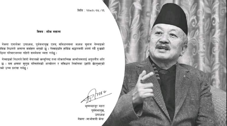 पूर्वसभामुख कृष्णबहादुर महराद्वारा नेम्वाङको निधनप्रति दुःख व्यक्त