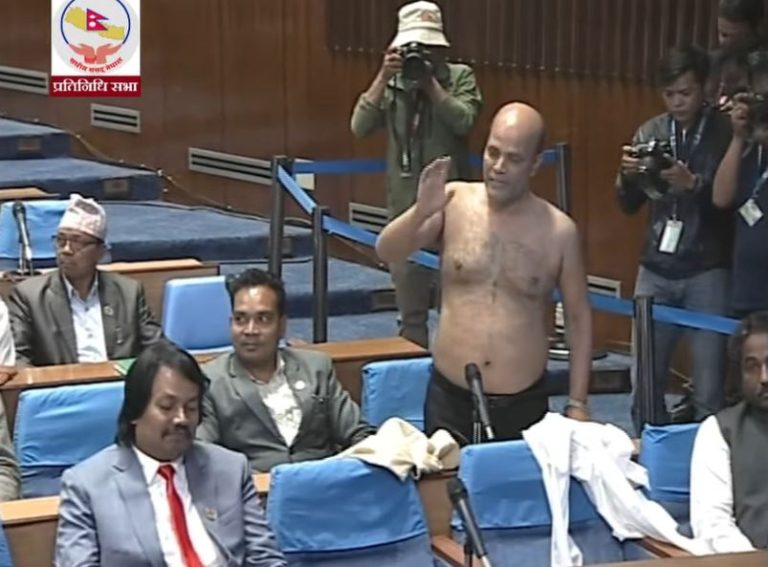 जब सांसद अमरेशकुमार संसदभित्रै अर्धनग्न बने