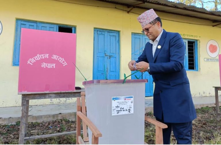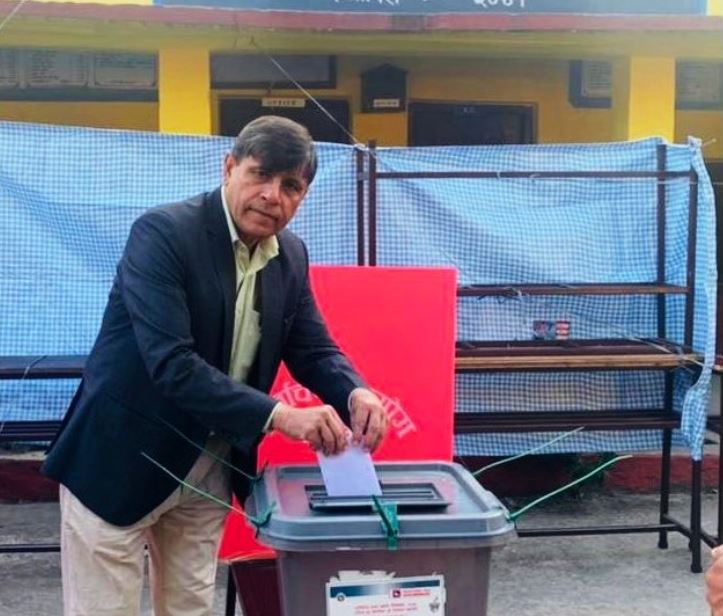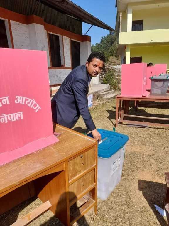 स्वतन्त्र पार्टीका उम्मेदवार बोधराज रेग्मीले गरे मतदान