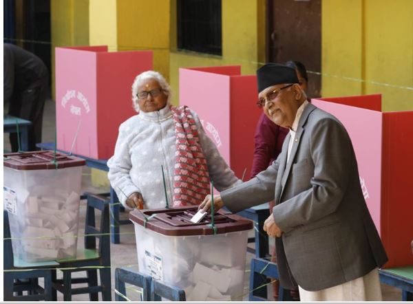 नेकपा एमाले अध्यक्ष केपी शर्मा ओलीले गरे मतदान