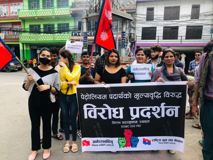 मूल्य वृद्धिको विरोधमा अनेरास्ववियु स्याङ्जाको सडकमा प्रर्दशन