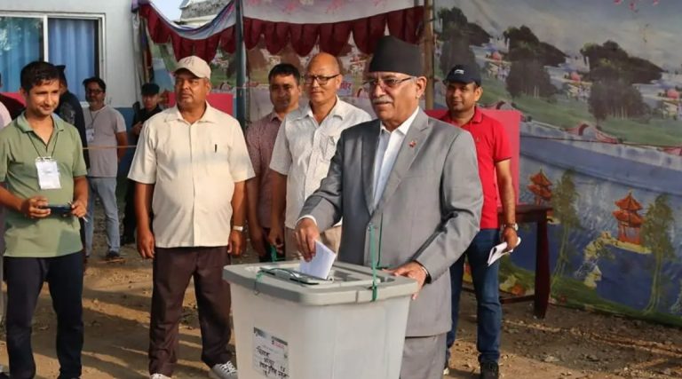 प्रचण्डले चितवनमा मतदान गरे