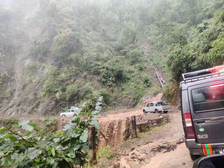 अविरल वर्षाले भालुवाङ-प्यूठान सडक खण्डको विभिन्न ठाउँमा क्षति, अवागमन प्रभावित