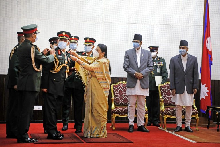 राष्ट्रपति भण्डारीद्वारा नवनियुक्त प्रधानसेनापति शर्मालाई दर्ज्यानी चिह्न,सकियो थापाको कार्यकाल